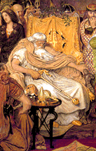 If there was ever a historical King Lear, his memory has faded into mythology and/or been conflated with others. Llyr and his son Manannan are Celtic ocean-gods; Manannan reappeared in Yeats’s plays and the “Dungeons and Dragons” games. The “children of Lir / Llyr” were transformed into waterbirds in another Celtic myth. Anglo-Israelite lore describes (“Llyr Lleddiarth “Half-Speech”, king of Siluria / the Britains, father of Bran the Archdruid, who married Anna, the daughter of Joseph of Arimathea; his close relatives included Cymbeline (Cunobelinus, fictionalized in Shakespeare’s later play), and Caractacus (Caradoc), a well-attested historical figure better-known today from the children’s song (“It’s too late… they just passed by”). In the Mabinogion, one of Llyr’s two wives is Iweradd (“Ireland”).
