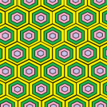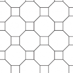 Rotation is a tessellating design where the congruent shape repeats around a central point. The finished design is repeated in a circular pattern inside the grid.