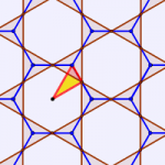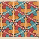 Reflection is a tessellating design where the congruent shape is repeated in a different method from a translation. The shape is repeated by sliding and flipping in both a horizontal and vertical directions inside the grid. The finished design fits together without gaps or overlaps.